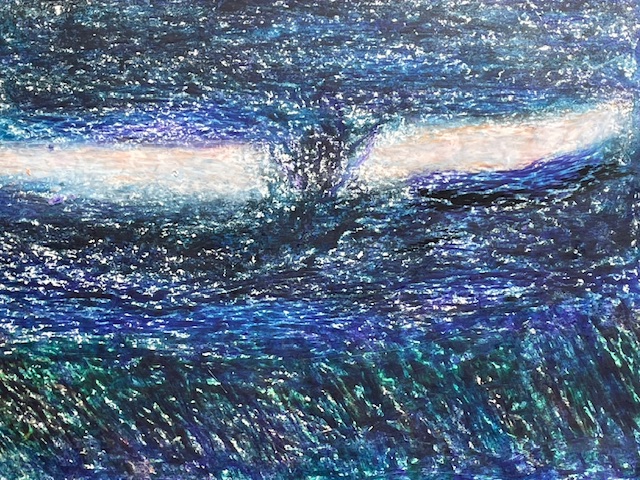 A recent sketch in waxpastel of the last bits of light in the sky seen from the train just coming out of Amsterdam around 17.30h.